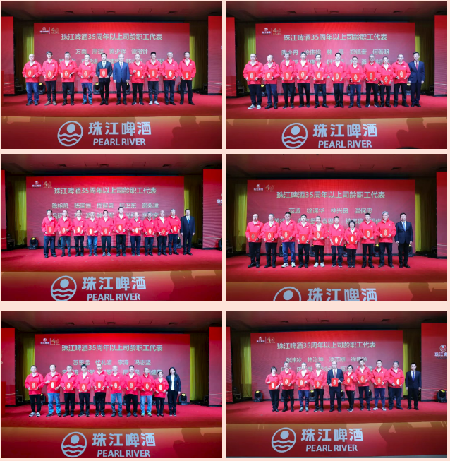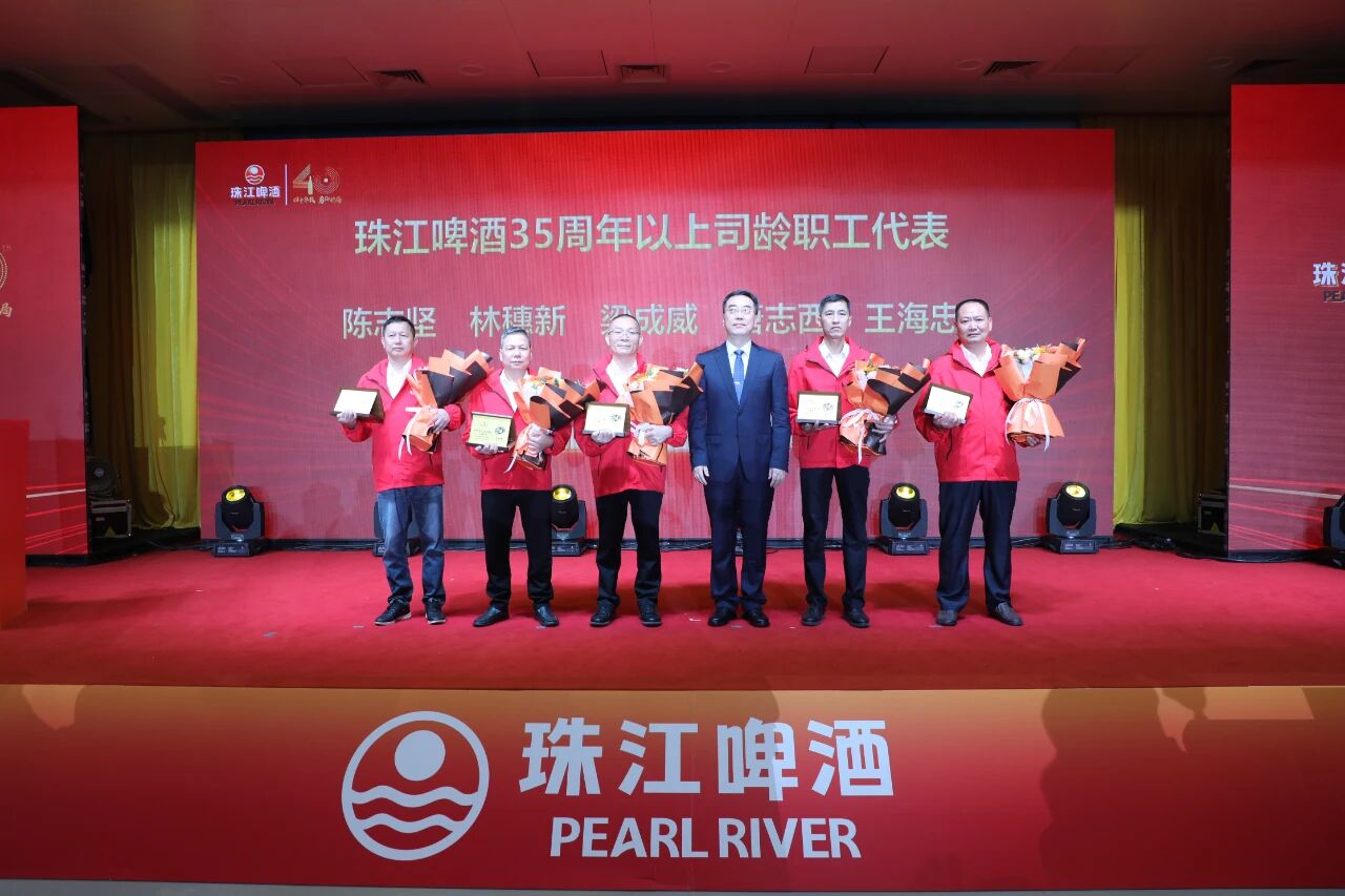 会议对35周年及以上司龄职工予以表扬,曾涛及公司领导班子成员为67名职工颁发纪念章和荣誉证书。四十载风雨兼程,珠江啤酒的每一项成就,都蕴含着一代代珠啤人的智慧与汗水。这份表扬,是对忠诚奉献的崇高致敬,是对每一位奋斗者最深切的感恩;这份表扬,是对匠心精神的传承,是对全体珠江啤酒人价值标杆的有力树立;这份表扬,更是对珠江啤酒精神血脉的郑重铭记,激励着新一代珠江啤酒人接过火炬,在砥砺奋进中继续谱写企业发展新篇章。